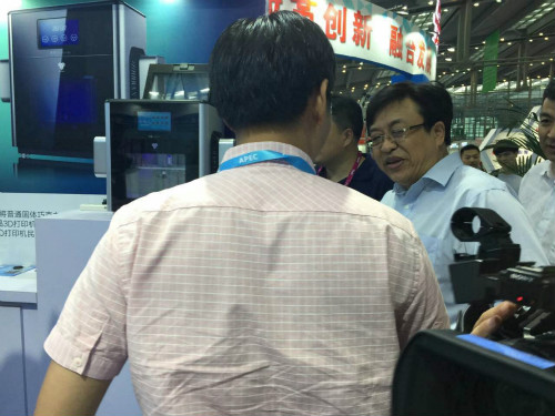 ▲北京市經信委中小企業管理處處長李巍先生視察中科宇杰展位